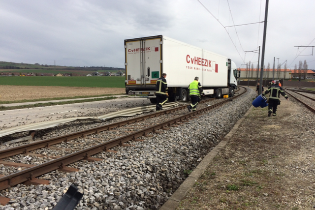 Un camion semi-remorque a dévié de sa trajectoire et est sorti de la route cantonale