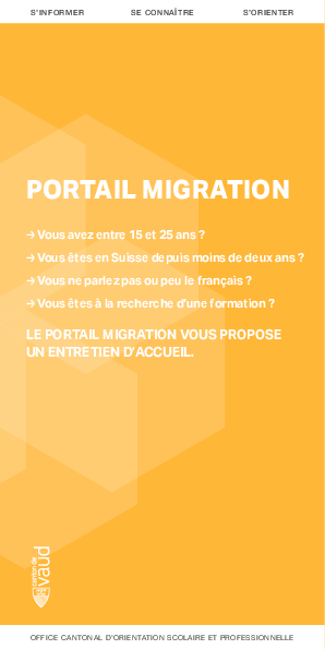 - Brochure (pdf, 401 Ko) donnant un aperçu des orientations pour les jeunes allophones en âge de 9e à 12e année venant d'arriver en Suisse
